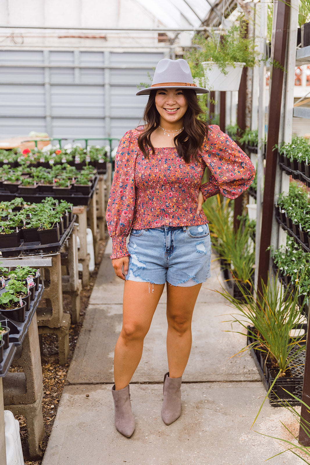 ***Paired with Tarynn Square Neck Floral Print Top, Daisy Distressed Denim Short, Dainty Disc and Stars Necklace and Linville Ankle Bootie